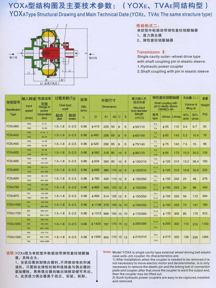 說明:YOXA型為單腔型外輪驅(qū)動帶彈性套柱銷聯(lián)軸器,其特點為: